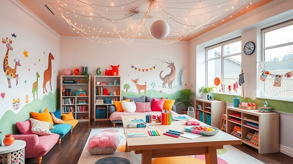 Transform your child’s space with vibrant decor like bright rainbow walls or whimsical cloud murals to spark creativity. Incorporate playful geometric patterns and funky animal prints for added excitement. Don’t forget about vibrant color-blocked furniture and wall-mounted organizers to bring order while keeping things fun. With unique elements like funky ceiling canopies and artistic photo galleries, you can create a lively, engaging atmosphere that inspires imagination. Explore even more creative ideas to enhance their room!